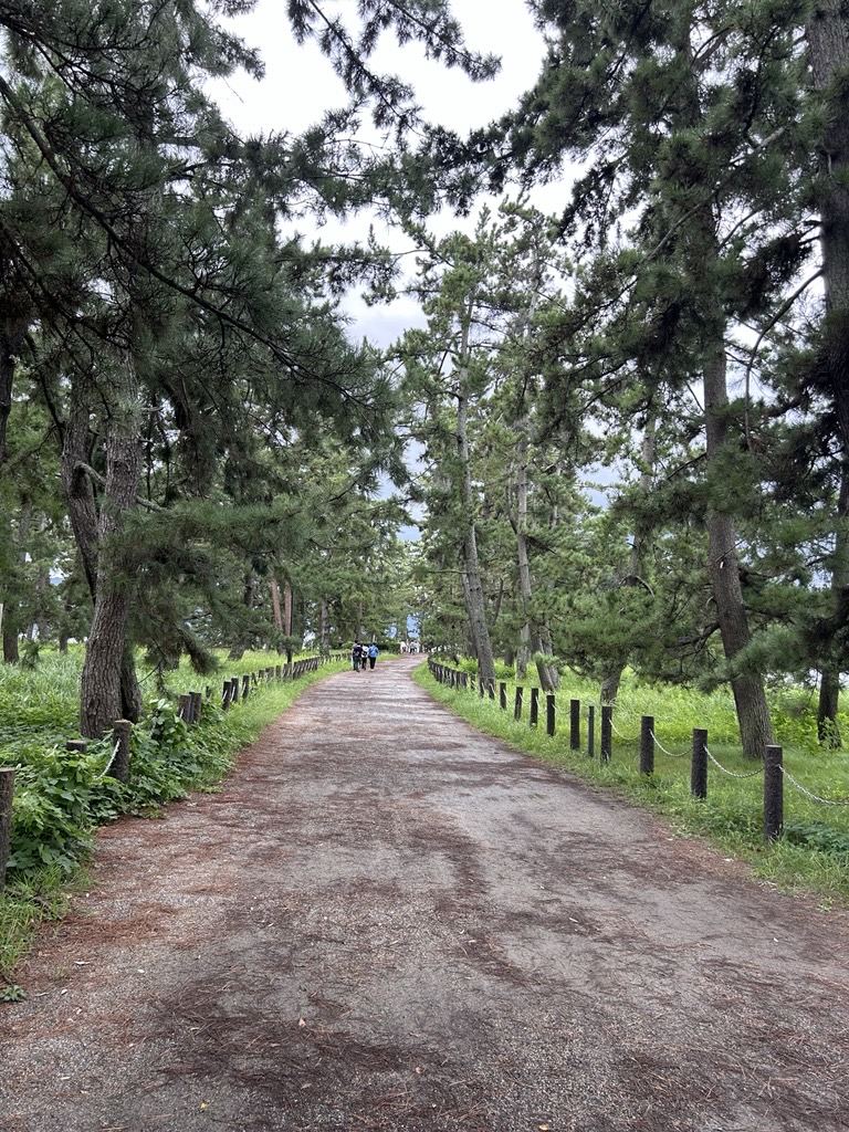 6,700本にも及ぶ青い松並木と白砂が3.6km続きますが、半分も行くと疲れてしまい引き返すことに。