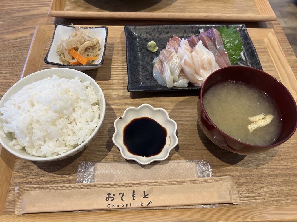 道の駅にあったのでそちらのレストランでいただきます。 「お造り定食」と「宮津カレー焼きそば」をオーダーしました。
