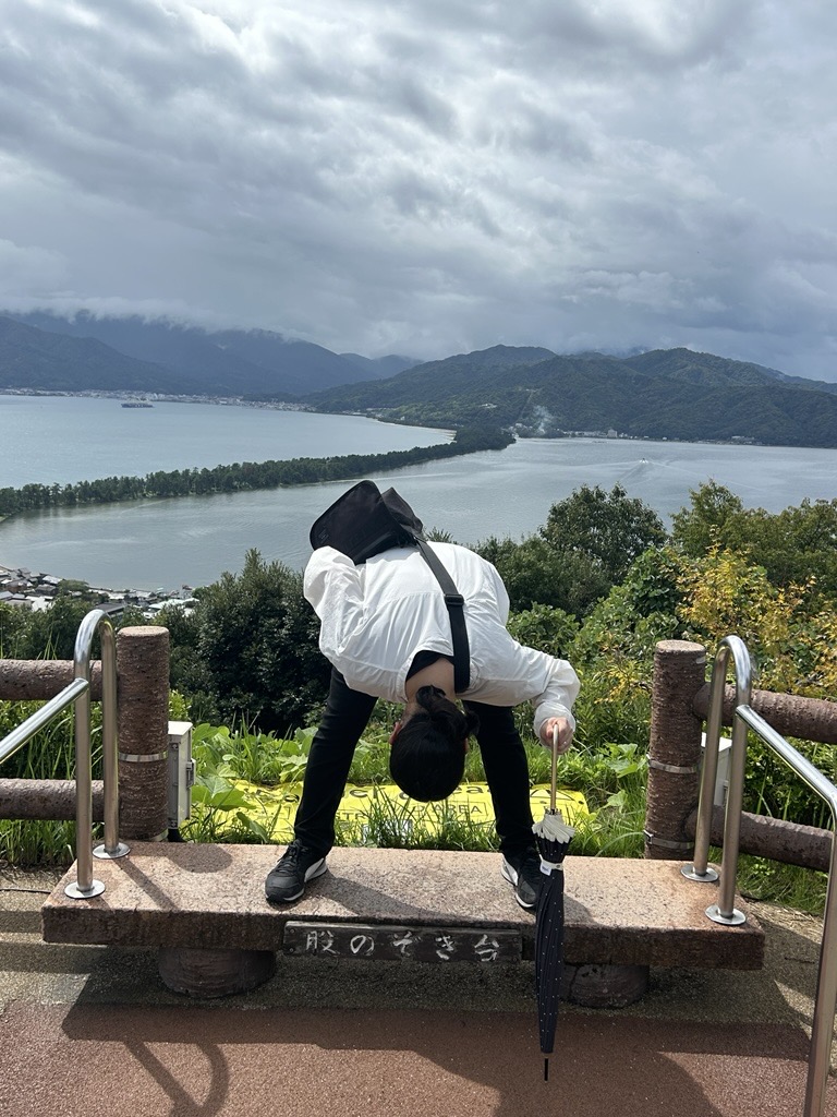 日本三景の一つ、天橋立で「股のぞき」しました。海に挟まれた松の道が「天上世界」なのだと等神話に登場するそうです。これで運気もアップです。