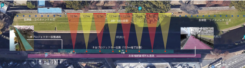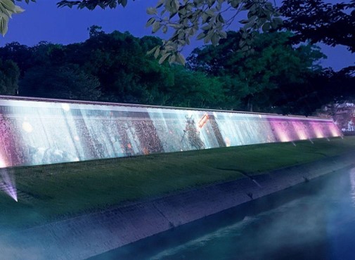 地元の雄・加藤清正公が残した功績を身近に感じてもらおうと、全長242mの長塀に8台のプロジェクターを使って、戦国時代の合戦や熊本城築城の様子などを絵巻物風のプロジェクションマッピングで投影。