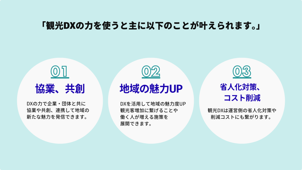 観光DXを活用して何をどのように解決したいか。その創意工夫と使い方により、利用するお客様も運営する方々にも便利になります。